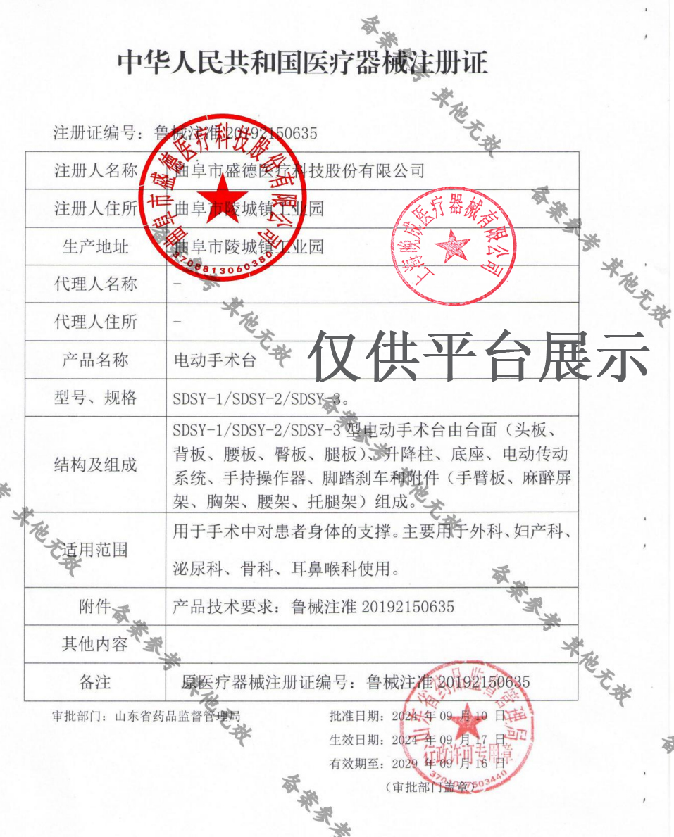 注冊證號:魯械注準20192150635