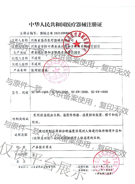 產(chǎn)品名稱 : SC-KW-4000型 醫(yī)用控溫毯