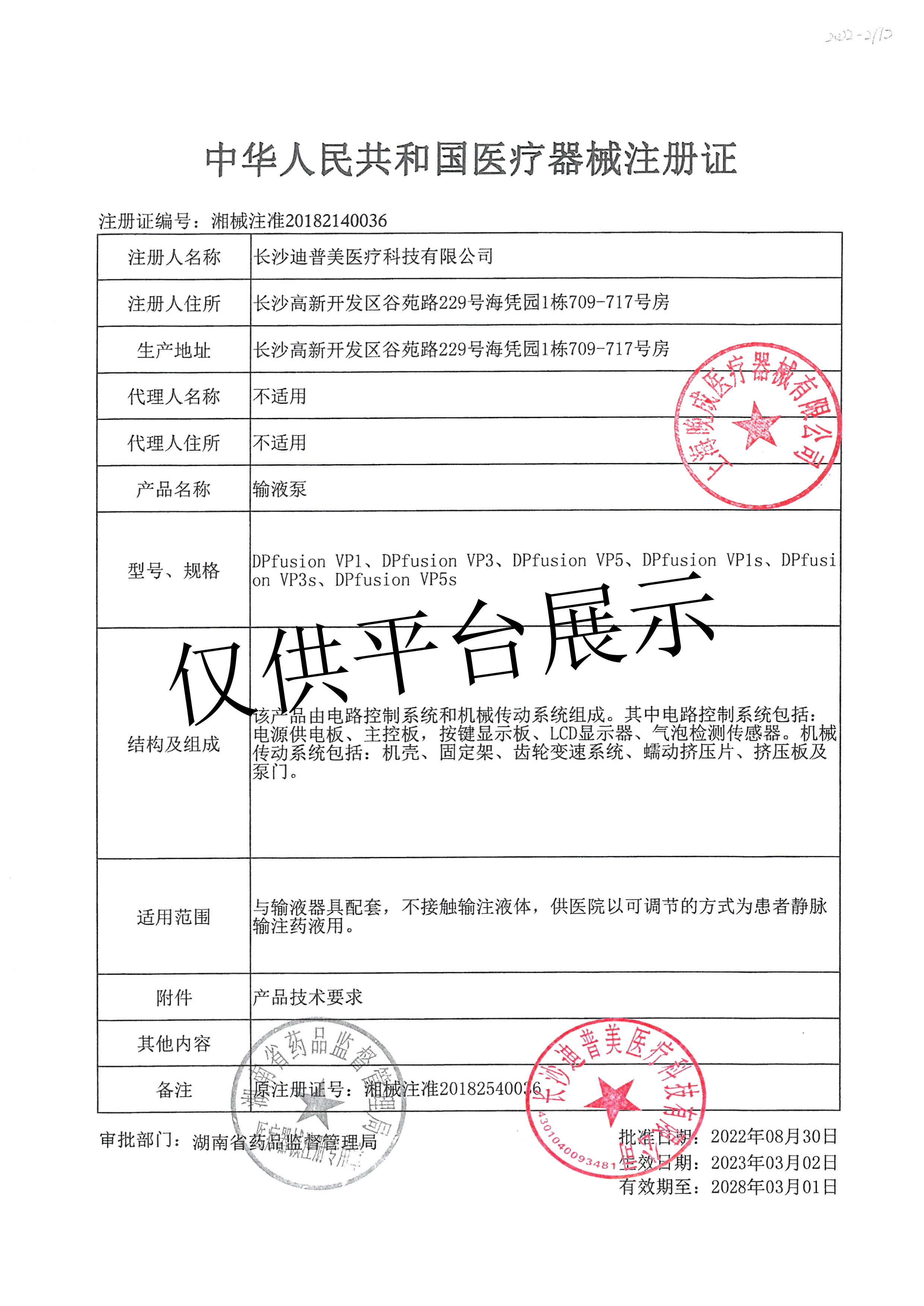 產(chǎn)品名稱 : 迪普美 輸液泵DPfusion VP1